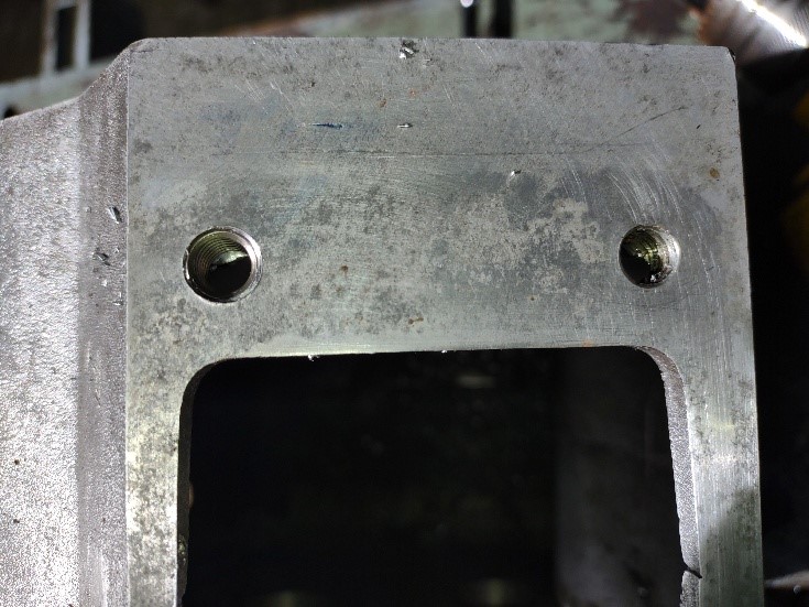 As well as a few remedial repairs, a thread insert was fitted in the left hole shown in the photo on the right.