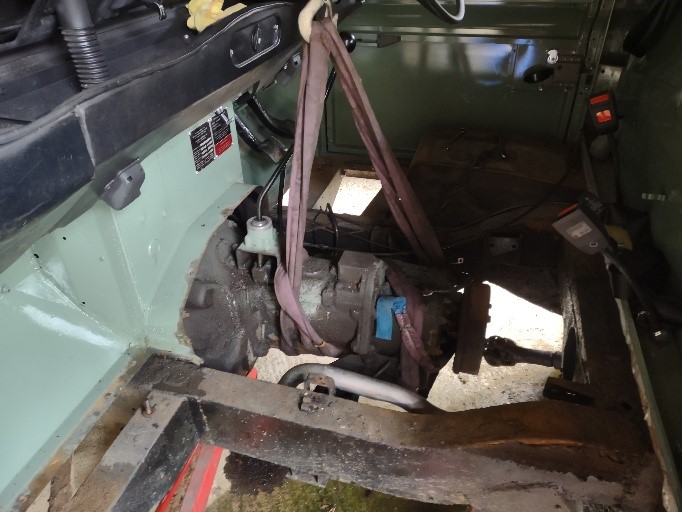 Gearbox in. Driveshafts, speedo cable, and clutch hydraulics all fitted. The handbrake will wait until after the seat base is installed. It can’t clearly be seen in the photo, but new rubber grommets were fitted in the clips for the speedo cable, as the originals were little more than sticky goo.