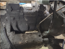Filthy and covered in overspray. The photo on the right shows that one of the reverse gate springs is missing.
