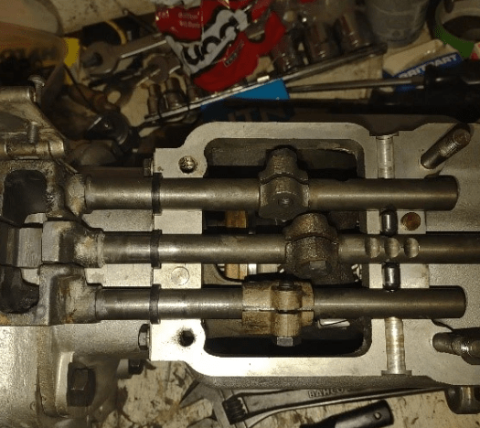 A typical Series 3 gearbox with noisy bearings in First, Second, and Third. The clutch release bearing also squealed from time to time. The gear change, however, was good, despite the springs having gone on the reverse gate.
